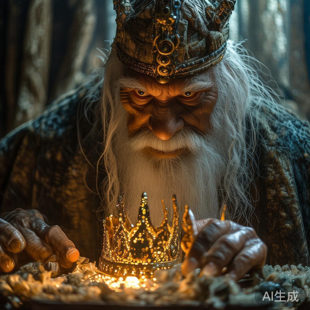 老妖王聚精会神地用石笔擦拭着他的金皇冠。值得一提的是,一个小学六年级使用的石笔对于老妖王而言可不是轻易能够得到的!他房间里的帷幔也是用蜗牛的分泌物布置的,空气中甚至带着阵阵细微的响声。
